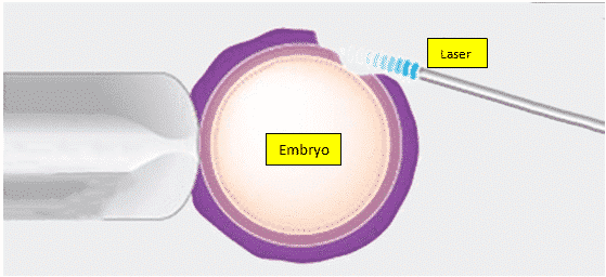 It’s suggested that Assisted hatching before embryo transfer, can help the embryo hatch from its protective outer shell, the zona pellucida and promote implantation in the uterine wall which can be performed by using acid, laser or mechanical methods. In Novin clinic, we use laser hatching technique to increase the chance of fertility and implantation.